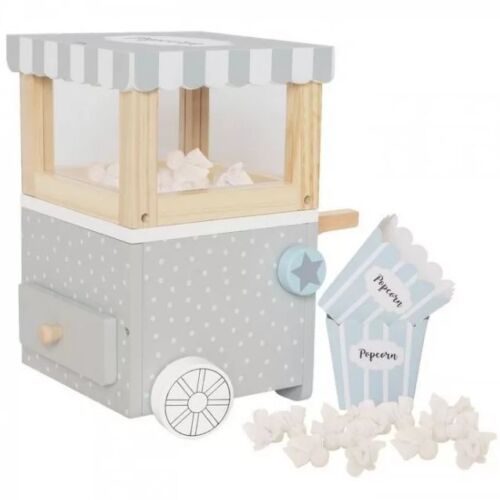 Uz ova drvena kolica za kokice koja će mališan moći da drži u svojoj sobi 24/7, imaće savršenu zanimaciju i igru u kojoj će moći da pravi kokice svojim ukućanima i sebi uz dve kartonske kutije za usluživanje i prave prvacate krpene kokice.