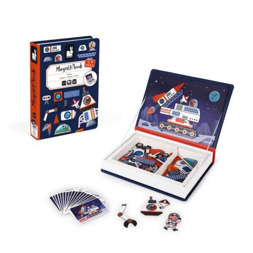 Kada se izvuče željena kartica za slaganje, mališani je mogu postaviti na unutrašnju stranu kutije koja je magnetna i složiti istu takvu sliku od magneta iz kutije, a unutra mogu pomoću magnetne ploče i dobijenih magneta da naprave sliku svemirskog vozila prikazanu na svakoj kartici. Ova mogućnost smišnjanja različitih slika i učenja o tajnama svemira satima će okupirati pažnju petogodišnjaka.