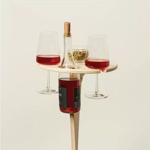 Pored toga, postoji i dodatni prostor na stočiću na koji se stavlja činija sa raznim grickalicama, tanjir sa sirevima i ostale zakuske po želji. Stočić je jednostavno postaviti u dvorištu ili na mestu gde kampujete, jer sa donje strane ima jedan šiljati nogar, tako da se sto jednostavno zabode u zemlju, čineći ga dovoljno stabilnim.