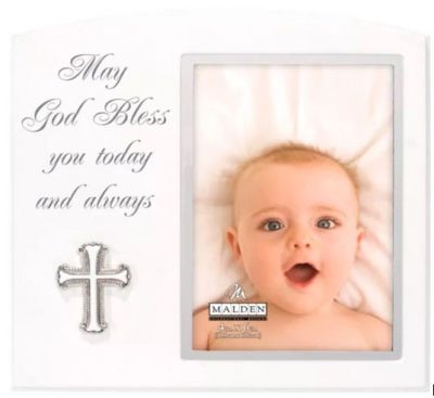 Na okviru su napisane reči: “Neka vas Bog blagoslovi danas i uvek.” Dakle, ako tražite najbolji poklon za krštenje bebe, ovaj simpatični okvir je odlično mesto za početak!