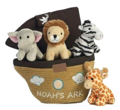 Noina arka je mekani plišani nosač koji sadrži punjene životinje od kojih svaka ima zvuk, uključujući žirafu, zebru, slona i lava. Odličan poklon za krštenje dečaka.