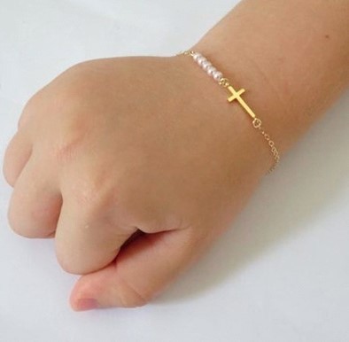 Uvek će čuvati svoj prvi komad nakita, ali ova delikatna Svarovski biser i zlatna krstasta narukvica stvoriće dodatnu posebnu uspomenu. Idealan poklon za krštenje.