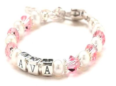 Dakle, svi drugi će verovatno dete maziti verskim darovima… tako da možete u potpunosti da krenete drugačijim putem i ciljate na nešto drugačije. Ova narukvica, napravljena od ružičastih kristala i slatkovodnih bisera, može se prilagoditi tako da se upiše ime devojčice u perlicama od srebra. Najbolje od svega je što dolazi u različitim dimenzijama.