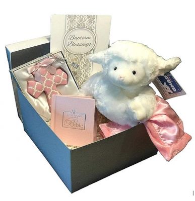 Ovaj prelepi set vam pomaže da ne nagađate već vam daje poklon sa prelepim izborom, sve u mekim nijansama ružičaste i bele. Pored veoma meke igračke u obliku jagnjeta, set uključuje i prekrivač za krevetić, bibliju za bebe i još mnogo toga.