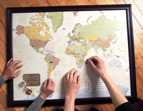 Ovo je kreativna tradicionalna mapa sveta i odličan je poklon za sina koji voli da putuje. Dolazi sa iglama koje pokazuju gde je bio, gde želi da ode i gde je njegovo omiljeno mesto. Takođe je personalizovana sa sopstvenom prilagođenom porukom tako da možete učiniti da ona izgleda baš onako kako želite.